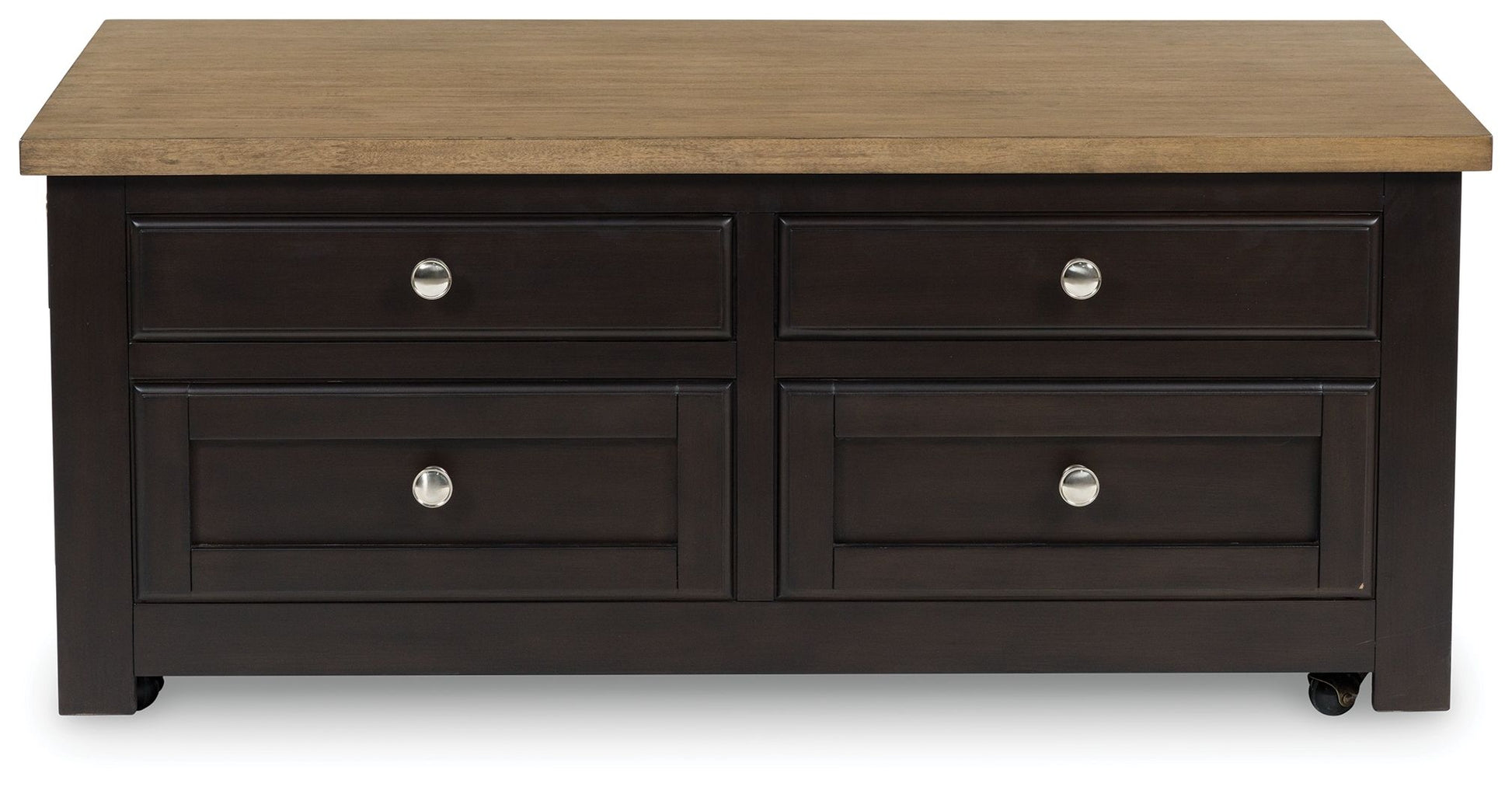When you’re styling your living room, convenience is key. With this lift-top coffee table, casual flair meets can’t-miss function. The hidden lift top brings added comfort to work-from-home tasks or chilling out by the TV for dinner. When you need to rearrange, built-in casters allow you to wheel the coffee table away with ease. This fashionably functional piece pairs a dark chocolate brown with a light wood tone, complementing a variety of color palettes.